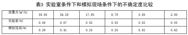 實驗室條件下和模擬現(xiàn)場條件下的不確定度比較(表3)兩次結果可以看出,兩次實驗各個流量點的不確定度差距非常大。可見,濃硫酸電磁流量計對安裝條件還是比較苛刻的。