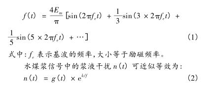 采用方波勵磁的水泥泥漿流量計,其傳感器輸出的與流量相關的感應電動勢信號的波形也類似于方波。針對與流量相關的感應電動勢信號f(t)的特點,可知其是由基波和奇次諧波疊加而成的。對于一個給定單峰值為Em的矩形波信號,其傅里葉展開為: