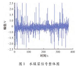 針對城市生活污水流量計測量水煤漿時出現(xiàn)較大波動,甚至回零這一問題,特去某煤化工企業(yè)甲醇分公司進(jìn)行現(xiàn)場數(shù)據(jù)采集。該公司所使用的對置式四噴嘴氣化有4個噴嘴,噴嘴管道口徑為125mm,管中水煤漿流量基本穩(wěn)定在19m³/h(流速約為0.48m/s)。每條噴嘴煤漿線上安裝了3臺城市生活污水流量計,每臺城市生活污水流量計由傳感器和變送器兩部分組成。選擇其中1條水煤漿管線上的1臺城市生活污水流量計進(jìn)行數(shù)據(jù)采集,因為該臺城市生活污水流量計測量結(jié)果波動大,甚至出現(xiàn)回零的現(xiàn)象。將課題組研制的基于DSP的電磁流量變送器的信號線和勵磁線接到該電磁流量傳感器的電極和勵磁線圈上,組合成完整的城市生活污水流量計,進(jìn)行水煤漿數(shù)據(jù)采集。使用的電磁流量變送器是以TI公司DSP芯片TMS320F28335為核心,采用高頻勵磁方案,其硬件主要包括勵磁控制系統(tǒng)和信號采集處理系統(tǒng),具體的模塊有勵磁驅(qū)動模塊、信號調(diào)理采集模塊、信號處理控制模塊、人機(jī)接口模塊、通信模塊及電源管理模塊。信號調(diào)理采集模塊中的調(diào)理電路對一次儀表輸出的信號進(jìn)行放大和濾波,截止頻率是2kHz,放大倍數(shù)約為230倍。通過NI公司USB-6216型號的數(shù)據(jù)采集卡進(jìn)行數(shù)據(jù)采集,把調(diào)理電路的輸出端連接到數(shù)據(jù)采集卡的一個差分輸入端,并設(shè)置數(shù)據(jù)采集卡工作在差分的測量模式,設(shè)置采集卡的采樣頻率為10kHz。采集多組水煤漿信號數(shù)據(jù),每組數(shù)據(jù)的時間長度為5min。
