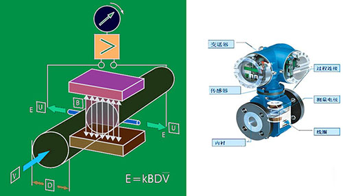 由上式可見,體積流量qv與感應電動勢e和測量管內徑D成線性關系,與磁場的磁感應強度B成反比,與其它物理參數無關.這就是智能印染污水流量計的測量原理.