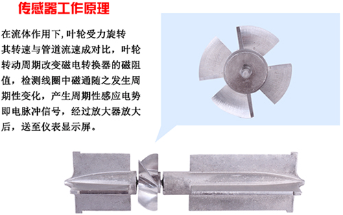 渦輪流量計采用渦輪進行測量。它先將流速轉換為渦輪的轉速,再將轉速轉換成與流量成正比的電信號。這種流量計用于檢測瞬時流量和總的積算流量,其輸出信號為頻率,易于數(shù)字化。圖中感應線圈和永久磁鐵一起固定在殼體上。當鐵磁性渦輪葉片經(jīng)過磁鐵時,磁路的磁阻發(fā)生變化,從而產生感應信號。信號經(jīng)放大器放大和整形,送到計數(shù)器或頻率計,顯示總的積算流量。同時將脈沖頻率經(jīng)過頻率-電壓轉換以指示瞬時流量。葉輪的轉速正比于流量,葉輪的轉數(shù)正比于流過的總量。渦輪流量計的輸出是頻率調制式信號,不僅提高了檢測電路的抗干擾性,而且簡化了流量檢測系統(tǒng)。它的量程比可達10:1,精度在±0.2%以內。慣性小而且尺寸小的流量計的時間常數(shù)可達0.01秒。