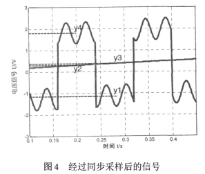 對于基線零點(diǎn)漂移,“正負(fù)差值法”是比較有效便捷的選擇,它不需要直接消除信號中的基線零點(diǎn)漂移,而是通過算法上去掉基線零點(diǎn)漂移對測量結(jié)果的影響。該系統(tǒng)中,激磁信號的頻率為6.25Hz,由于所測量的液體流速不會有明顯的突變,所以在信號的一個周期0.16s內(nèi),可以采用一個波峰減去波谷的均值來表示此時的流量信號,也即如圖3中|y4-y1|其中y4是從nT+T/4到nT+T/2采樣結(jié)果的算術(shù)平均值,y1是從到(n+1)T進(jìn)行采樣結(jié)果的算術(shù)平均值。但是由于斜率零點(diǎn)漂移的存在,會出現(xiàn)如圖3中|y3-y2|的誤差,所以需要利用式(15)的結(jié)果對該誤差進(jìn)行修正,修正后的結(jié)果也就是此時管道中液體感應(yīng)出的電動勢為: