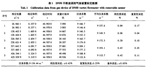 在實(shí)際標(biāo)定過(guò)程中,相同口徑的不斷流渦街與普通氫氣流量計(jì)在可測(cè)流量范圍、基本誤差、重復(fù)性等參數(shù)上基本一致,達(dá)到了設(shè)計(jì)和使用精度的要求。