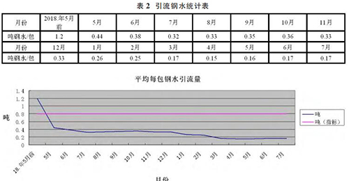 ④通過建立聯(lián)動(dòng)考核機(jī)制使得員工作業(yè)質(zhì)量得到明顯提升。綜上所述,通過有針對(duì)性的改進(jìn)后,引流鋼水量大幅下降 80%,鋼水利用率上升 3%。