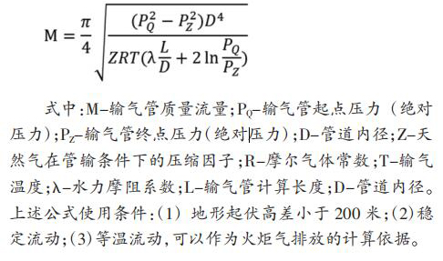 天津 LNG 設(shè)置兩座電磁流量計,單臺設(shè)計處理量 60t/h, 兩臺火炬并列運行,一用一備。自 LNG 儲罐及 BOG 系統(tǒng)來的超壓 BOG 經(jīng) PV 閥后進入火炬氣排放總管,經(jīng)分液罐沉淀 BOG 中夾雜的液滴后進入火炬燃燒放空。 測水電磁流量計設(shè)置四級排放,具體設(shè)置如表 1。 2 火炬氣排放量計算方法根據(jù)水平輸氣管流量計算基本公式: